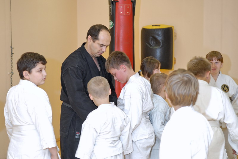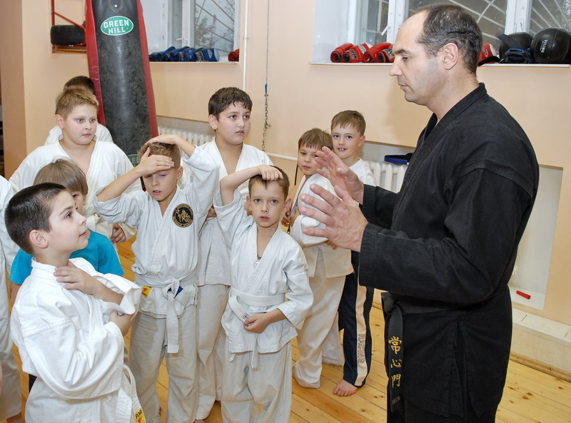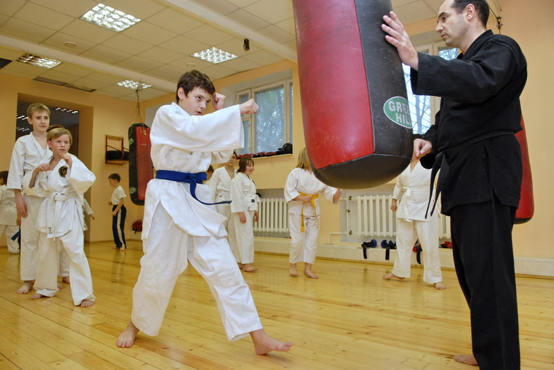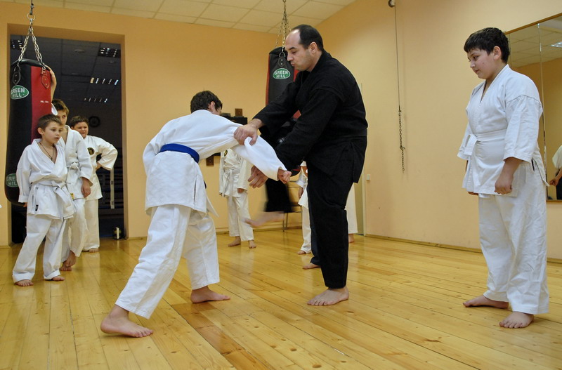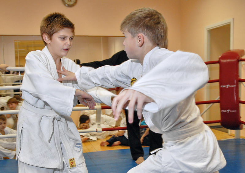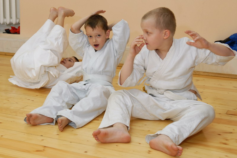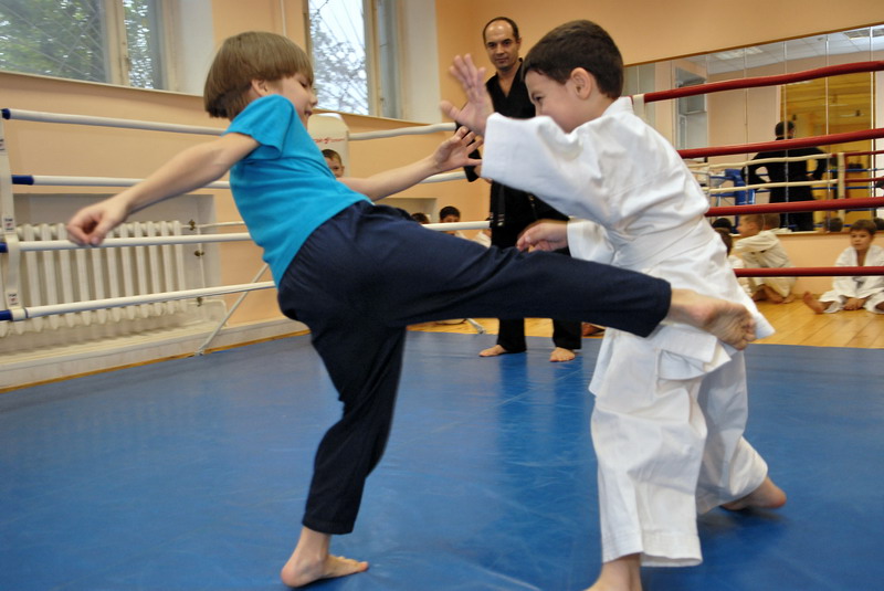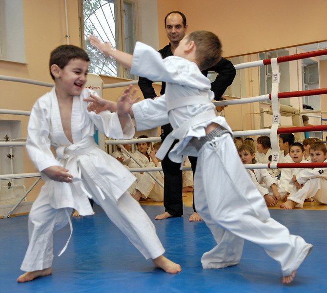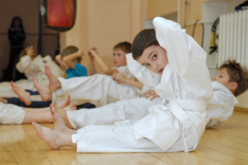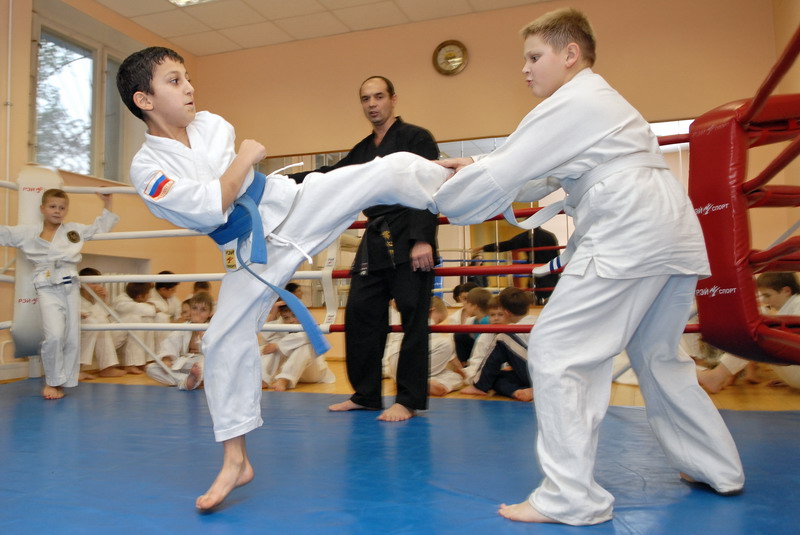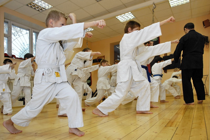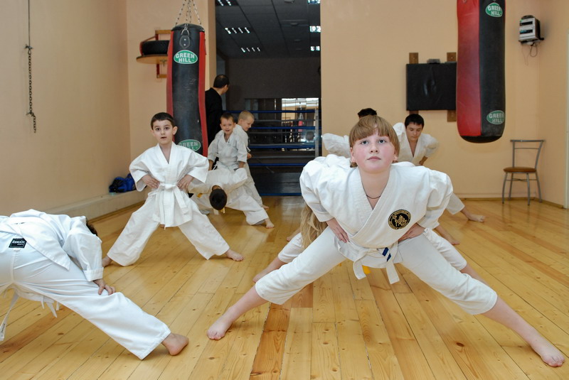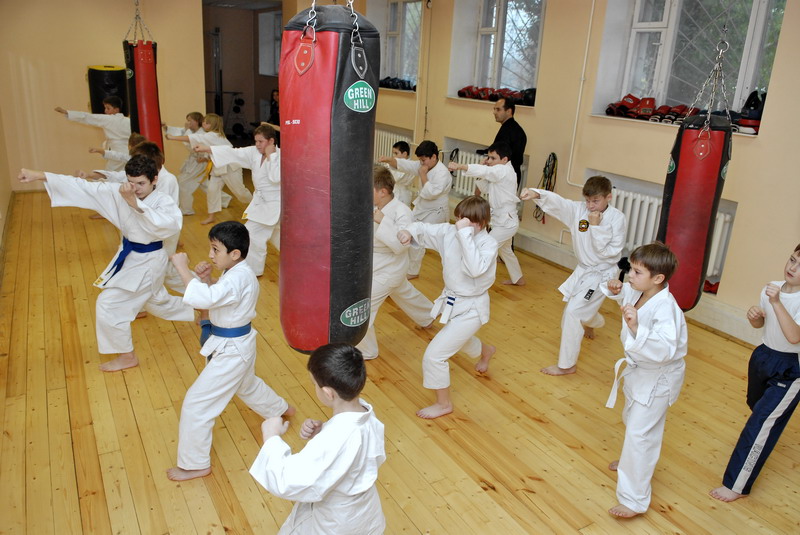 Оперативного каратэ дети на тренировке